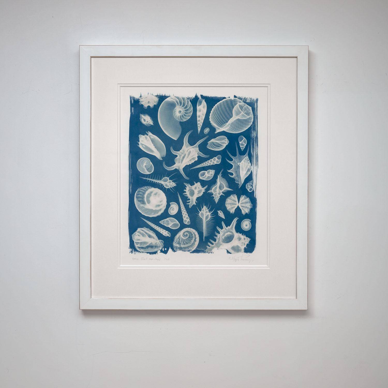 25 limited edition, showcase the amazing technical combination of the 2 contact photographic processes: x-ray and cyanotype. The images are first created with x-ray film and then craft printed onto 300gsm archival paper, using the UV light from the sun. Every print is unique due to the bespoke nature of the application of the cyanope chemicals to the paper. The prints are archival double-mounted and framed behind non-reflective ARTGLASS AR 70. Each print is signed, dated, titled by the artist and is also supplied with a blockchain Certificate of Authenticity via Verisart.